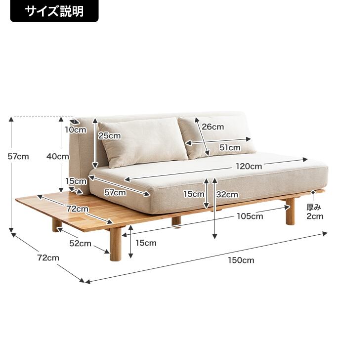 ●サイズ:幅150cm×奥行72cm×高さ57cm(座面高:32cm)