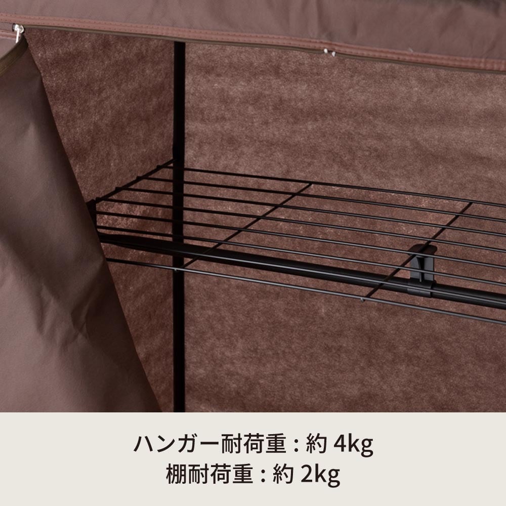 ●耐荷重は、ハンガー部分で約4kg、棚部分で約2kgと十分な強度を持ち、大切な衣類を安心して掛けることが可能です。