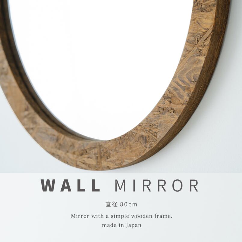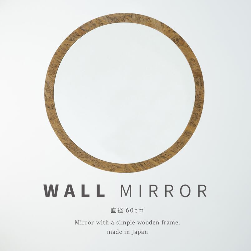OSB丸形ウォールミラー【60】 北欧風 ナチュラル ヴィンテージ 鏡 壁掛け 丸 日本製